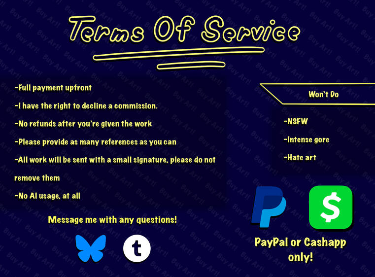 PLEASE READ THE TOS BEFORE CONTACTING ME FOR A COMMISSION